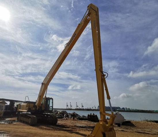 常规挖掘机抢险的时候,往往需要配合使用人海战术,劳动强度大,同时抢险过后需要重新整修坝坡,增加了抢险成本。而利用长臂挖掘机